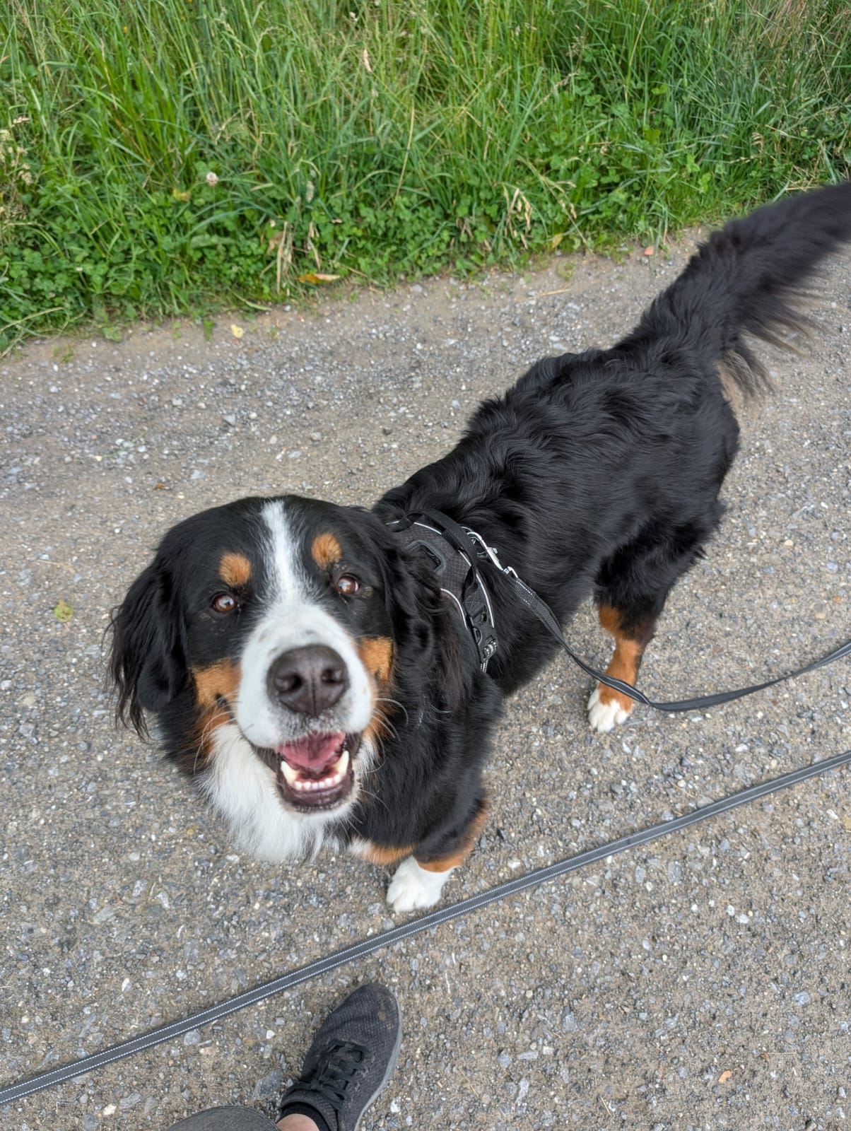 Fast immer mit dabei: meine treue Beifahrerin Leni. Sie ist mein Hund und schaut gern mal bei der Fahrschule vorbei – natürlich nur, wenn du nichts dagegen hast.